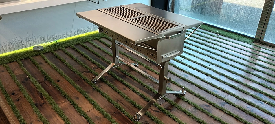 Como el resto de las barbacoas para eventos de Sibai, es una pieza robusta, segura y, como siempre, 100 % personalizable en acabados, detalles y logotipo, dentro de nuestras soluciones artesanales en acero inoxidable.