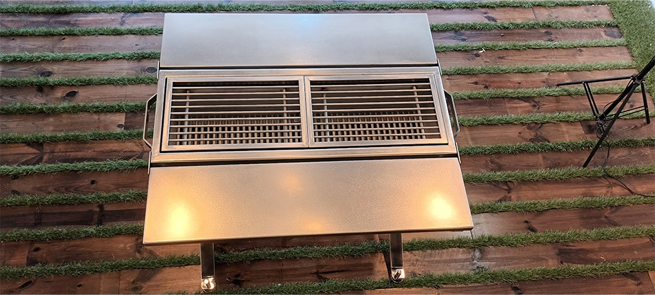 Robusta, desmontable y segura: la brasa al servicio del directo.