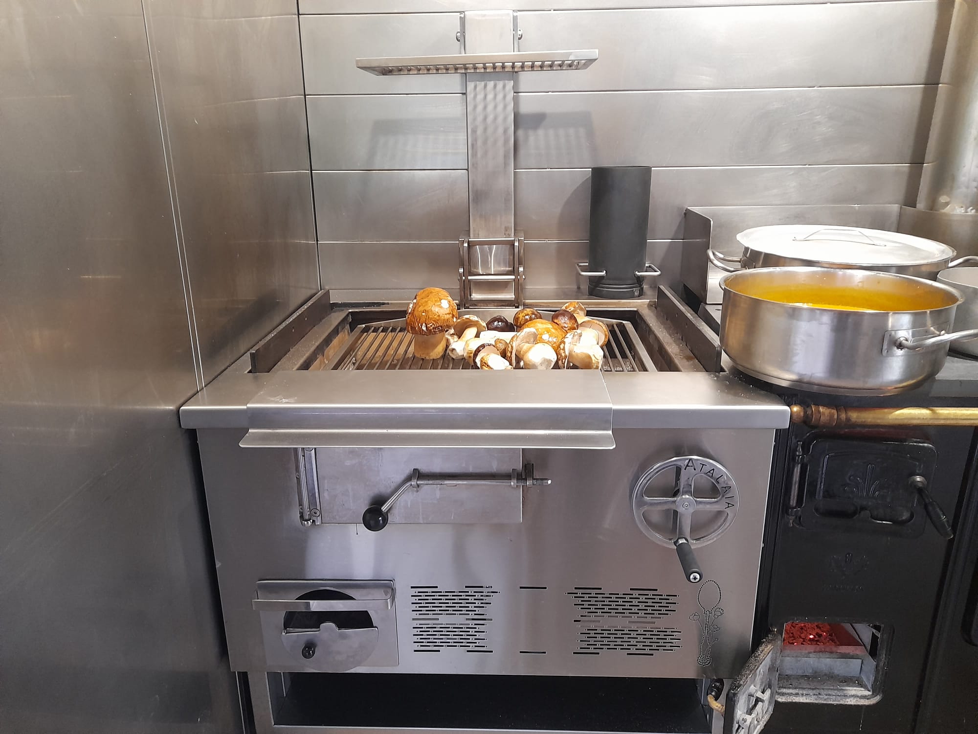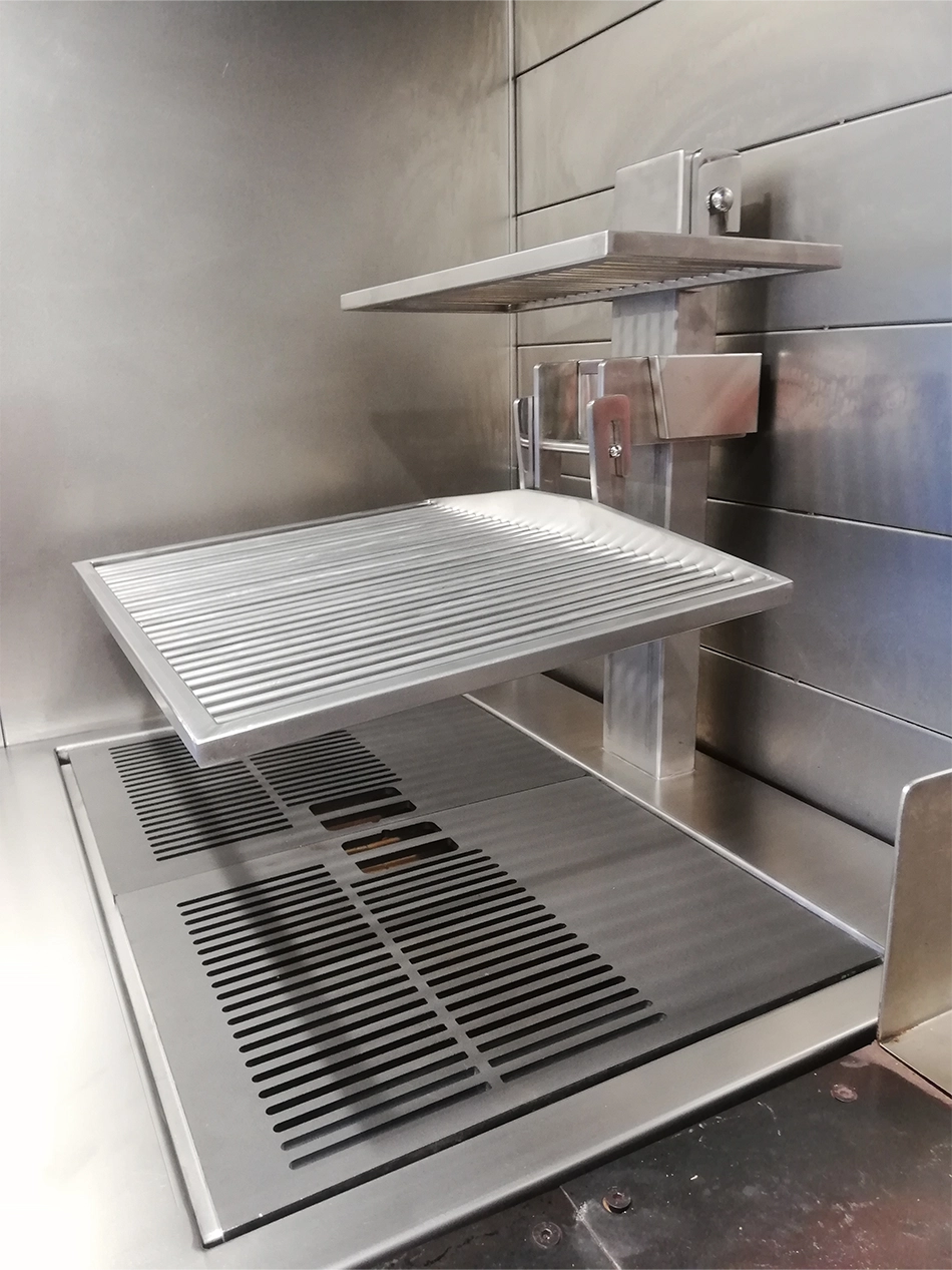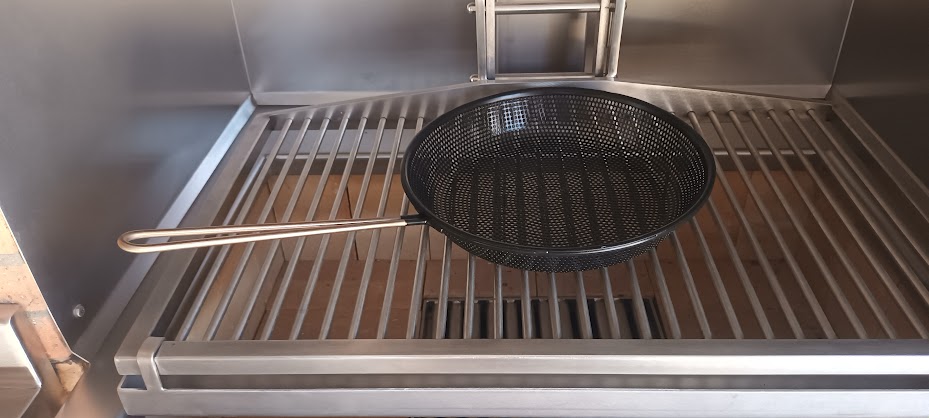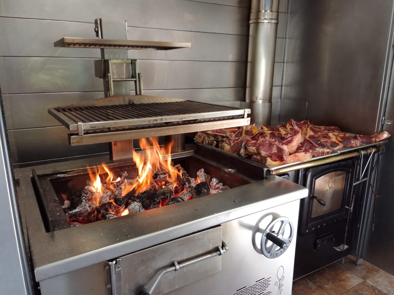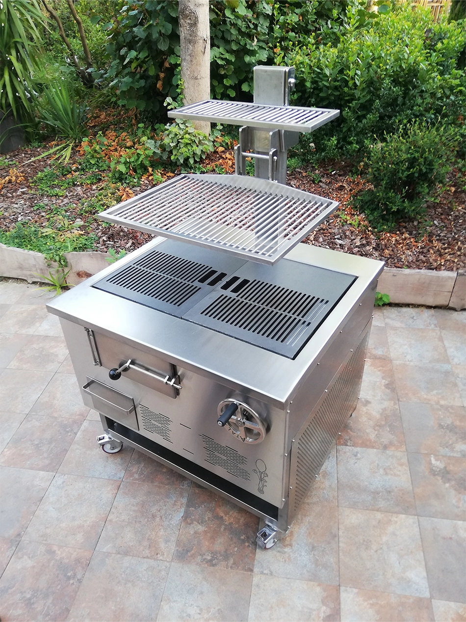 Las rejillas pueden descender prácticamente hasta la altura del carbón manteniéndose cerradas, lo que facilita un control térmico muy fino y una cocción exacta, sin riesgo ni complicaciones para el equipo.