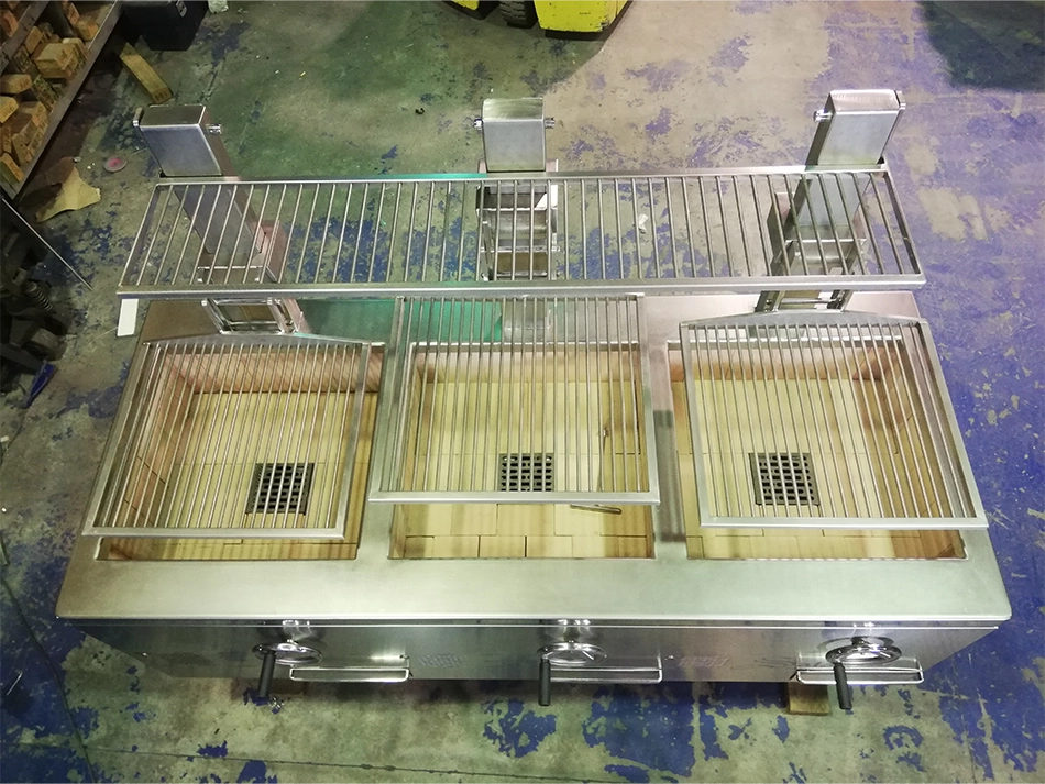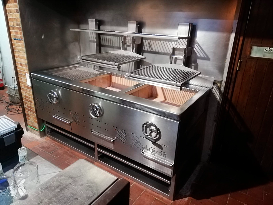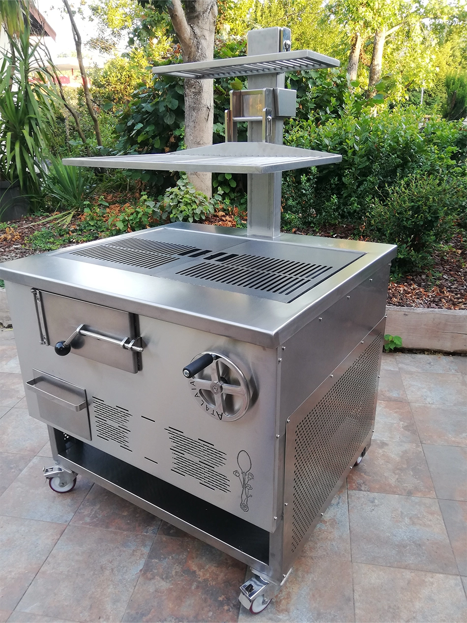 Fabricadas en acero inoxidable, con cubo interior de acero y forrado en ladrillo refractario, son parrillas resistentes como un tanque y forman parte de un menaje para brasas diseñado para durar muchos servicios, muchos años y muchos fuegos.