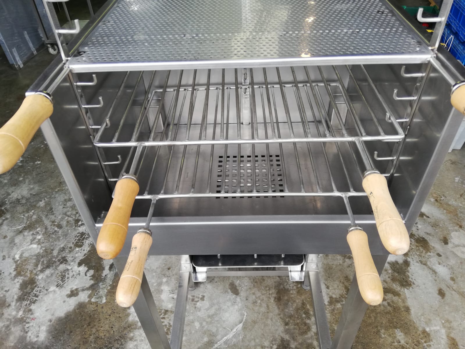 Fabricadas íntegramente en acero inoxidable y revestidas con ladrillo refractario, estas robatas garantizan una cocción estática potente, limpia y eficiente, reduciendo el consumo de carbón sin perder intensidad.